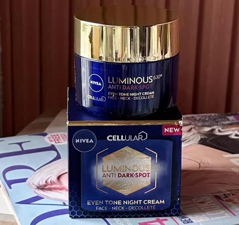 Возможность ухаживать за лицом, шеей и декольте – зонами, которые наиболее подвержены воздействию солнечных лучей. Активация синтеза собственной гиалуроновой кислоты, которая интенсивно увлажняет и восстанавливает кожу. Заметное уменьшение размера пигментных пятен всего за 4 недели. Выравнивание тона лица, регенерация и укрепление кожи. Профилактика появления пигментации в будущем. Пусть ночной крем LUMINOUS630® Выравнивание тона станет частью вечернего ритуала по уходу за собой. Наносите его кончиками пальцев на кожу, лицо, шеи и декольте, избегая области вокруг глаз. Теперь можете отдыхать, а LUMINOUS630® будет интенсивно работать, восстанавливая кожу и выравнивая тон лица. Aqua, Glycerin, Isopropyl Palmitate, Caprylic/Capric Triglyceride, Methylpropanediol, Cocoglycerides, Cetearyl Alcohol, Cetyl Palmitate, Distarch Phosphate, Glyceryl Stearate, Dimethicone, Butyrospermum Parkii Butter, Isobutylamido Thiazolyl Resorcinol, Sodium Hyaluronate, Creatine, 1-Methylhydantoin-2-Imide, Ethylhexylglycerin, Sodium Stearoyl Glutamate, Carrageenan, Xanthan Gum, Sodium Chloride, Trisodium EDTA, Sodium Hydroxide, Phenoxyethanol, Parfum Чтобы сполна оценить возможности LUMINOUS630®, сперва нанесите сыворотку и крем для области вокруг глаз из этой линейки NIVEA. Небольшое количество крема нанесите на лицо, шеи и декольте по массажным линиям. Дайте ему впитаться. Наносите за 30 минут до сна.