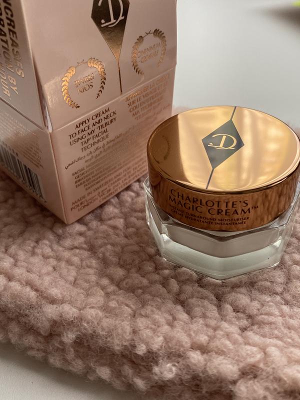Легендарный многозадачный дневной крем для лица Charlotte Tilbury Charlotte's Magic Cream✨ 💫 15 ml. Charlotte's Magic Cream завоевал множество наград, признание мировых визажистов, моделей и знаменитостей. Его секретная формула моментально освежает и преображает кожу, обеспечивает глубокое увлажнение, возвращает здоровое сияние и ровный цвет лица, обеспечивая эффект 8 часового сна. ⠀ Крем изначально был разработан Шарлоттой для максимально быстрой подготовки уставшей кожи моделей перед показателями. Его уникальность заключается в способности стимулировать выработку коллагена и мгновенно устранять тусклый цвет кожи. В составе: ✨Гиалуроновая кислота - притягивает и удерживает влагу в клетках кожи. ✨Пептидный комплекс - обладает подтягивающим и укрепляющим эффектом. ✨Экстракты жасмина, алоэ вера, дамасской розы, витамин А - избавляют от воспалений, убирают покраснения, выравнивают тон и стимулируют быструю регенерацию кожи. ✨УФ фильтры широкого спектра. Крем безукоризнен как база под макияж – благодаря мощному увлажнению даже самое плотное тональное средство распределяется по коже равномерно и без усилий. Magic Cream не перегружает кожу и позволяет макияжу выглядеть свежо и эффектно весь день. Charlotte's Magic Cream обладает насыщенной текстурой, очень быстро впитывается, не оставляя жирности и липкости, не конфликтует с кремовыми и пудровыми продуктами. Подходит для нормальной, сухой и обезвоженной (но не аллергиичной и очень чувствительной) кожи. Объем: 15 мл.