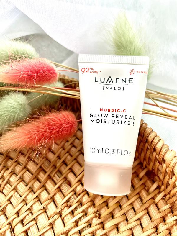 10 ml крем для обличчя інтенсивно зволожує освіжає та освітлює шкіру веганський Nordic-C [Valo] - це асортимент косметичних засобів від Lumene, формули яких збагачені освітлюючим вітаміном С. Цей інгредієнт покращує загальний вигляд і стан шкіри. Крім того, шкіра впродовж тривалого часу виглядає сяючою та молодою. Valo по -фінськи означає легкий - завдяки косметиці Nordic -C [Valo] Ваше обличчя буде наповнене сліпучим сяйвом! Lumene Nordic-C [Valo] Glow Reveal Moisturizer - це інтенсивно зволожувальний та освітлюючий крем з формулою, що містить 92% інгредієнтів природного походження. До складу косметичного засобу входить, серед іншого, інноваційний освітлюючий комплекс Nordic-C на основі вітаміну С та багатий антиоксидантами екстракт арктичної морошки. Крім того, склад збагачений арктичною джерельною водою, гіалуроновою кислотою та вітамінами В3 та В5. Крем Lumene Nordic-C [Valo] призначений для всіх типів шкіри. Він запобігає зневодненню шкіри, надає їй енергію та забезпечує глибоке зволоження. Він має омолоджувальну та проти старіння дію. Після використання шкіра обличчя виглядає освіженою, гладкою, молодою і сяючою. Формула зволожувального крему Glow Reveal не містить інгредієнтів тваринного походження, завдяки чому чудово підходить для веганів та вегетаріанців.