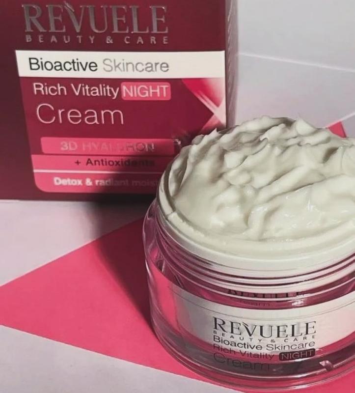 🌙Насыщенный ночной крем для лица Revuele Bio Active 3D Hyaluron Skin Care 🥰Действие крема направлено на борьбу с морщинами, потерю упругости и тусклостью кожи. ▪️разглаживает морщины; ▪️интенсивно увлажняет кожу, придает эластичность и сияние; ▪️подтягивает овал лица и ускоряет процессы обновления клеток; ▪️выравнивает тон. ❗️Секрет ночного крема заключается в комплексе нового поколения, включающем высококонцентрированные активные детоксифицирующие компоненты, усиленные хронобиологическим эффектом, способствующие постепенному высвобождению активных компонентов в течение ночи. ✅Подходит для всех типов кожи. 50 ml