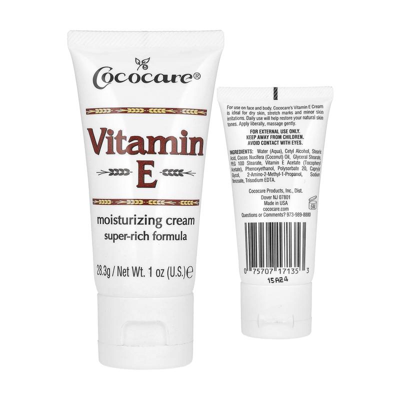 Cococare зволожувальний крем з вітаміном E 28,3 мл 1 рідка унція для обличчя тіла сухої шкіри розтяжок роздратування шкіри Супернасичений склад Крем з вітаміном Е від Cococare ідеально підходить для догляду за сухою шкірою, зменшення розтяжок та гоєння незначних подразнень шкіри. Щоденне використання допоможе відновити природний тон шкіри. Рекомендації із застосування Для використання на обличчі та тілі. Наносити в невеликій кількості двічі на день. Інші інгредієнти Вода (aqua), стеаринова кислота, токоферилацетат (вітамін E), мінеральна олія, (Paraffinum liquidum), цетиловий спирт, триетаноламін, полісорбат 20, ЕДТК, метилпарабен, пропілпарабен, ДМДМ гідантоїн
