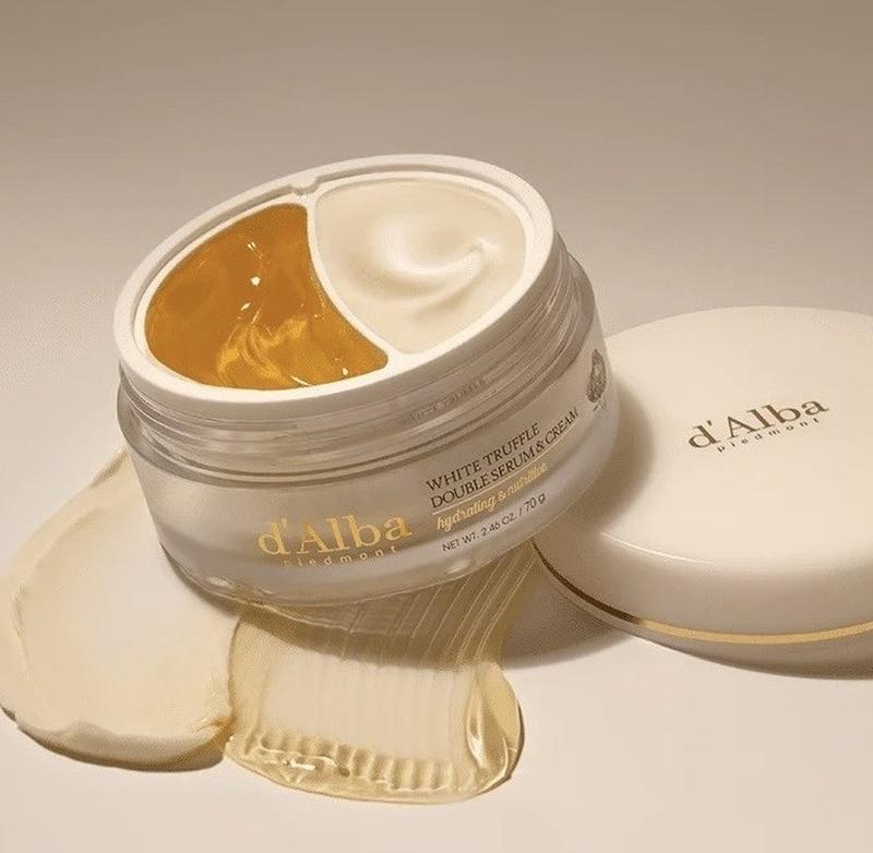 Крем уповільнює процеси старіння, стимулює синтез колагену та еластину, зміцнює тургор. Вирівнює рельєф обличчя, підтримує оптимальний рівень зволоженості, перешкоджає втраті вологи. Подвійна формула продукту забезпечує ідеальну консистенцію стану вашої шкіри, яке змінюється протягом дня. Сироватка, що добре зволожує та заспокоює шкіру, з інтенсивним кремом, корисним для харчування та еластичності, становлять систему інтенсивного догляду за шкірою 2-в-1. Оптимальне співвідношення 10 000ppm білого трюфеля, насиченого токоферолом, забезпечує додаткову еластичність та яскравість як у сироватці, так і в кремі. Аква-сироватка містить веганський сертифікований Ceramide NP, екстракт центели азіатської, пантенол, який заспокоює шкіру та зволожує її. Інтенсивний крем складається з 8 змішаних олій d'alba (олія примули вечірньої, олія насіння камелії, олія авокадо і т. д.) та сертифікованого веганського екстракту колагену з 7 видами комплексу білих квітів, що підвищує еластичність шкіри та надає їй молодого вигляду. життєва сила. Головним діючим компонентом крему є екстракт білого трюфеля, який підвищує імунітет шкіри, покращує обмінні процеси в клітинах, регулює роботу сальних залоз, а також омолоджує: розгладжує і підтягує шкіру, робить зморшки менш вираженими, освітлює пігментні плями. Крем має ніжну текстуру, яка моментально вбирається, роблячи шкіру м'якою і бархатистою. 2-етапний крем для обличчя повертає шкірі втрачену вологу, живить та відновлює еластичність шкіри, не залишаючи липкого відчуття на обличчі. Формула з потужними інгредієнтами поєднує в собі екстракт білого трюфеля, гіалуронову кислоту, цераміди та екстракт колагену. Крем забезпечує 2-етапний догляд.