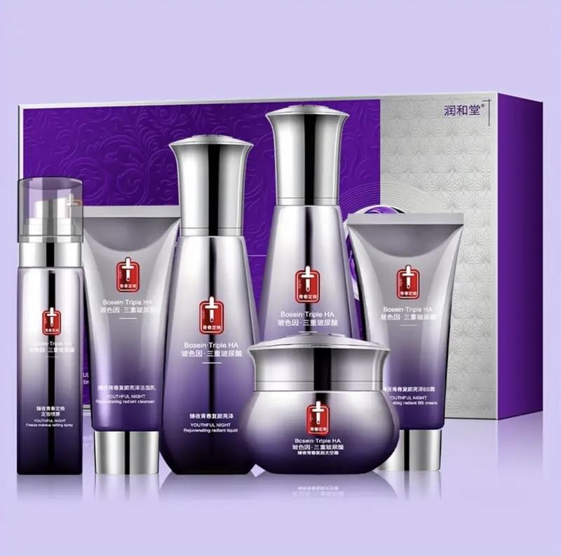6-компонентный набор для ухода за кожей с гиалуроновой кислотой и витаминами KATUNE - осветляющая эссенция, тонер, лосьон, ночной крем, очищающее средство, BB-крем для всех типов кожи, гипоаллергенный, увлажняющий укрепляющий набор, идеально подходит для подарков, жид смешан фио-красная гамма.