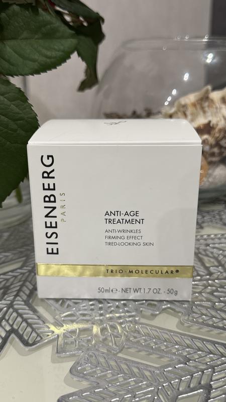 Eisenberg Paris Trio Moleculaire - крем для обличчя та шиї, що наповнює шкіру необхідними мінералами, киснем і живильними компонентами. Формула розроблена для жінок від 45 років. Щоб запобігти втраті вологи в клітинах, позбутися дрібних зморщок і відновити шкіру, використовуйте регулярно Trio Moleculaire. Крем створений на базі рослинних компонентів, ідеально підійде для чутливої або комбінованої шкіри. Цитокіни, кисень, вітаміни С і Е — ключі молодості. Тепер це все в одному бʼюті-продукті. Eisenberg Paris Trio Moleculaire - експерт у галузі косметики для догляду за обличчям і шиєю.