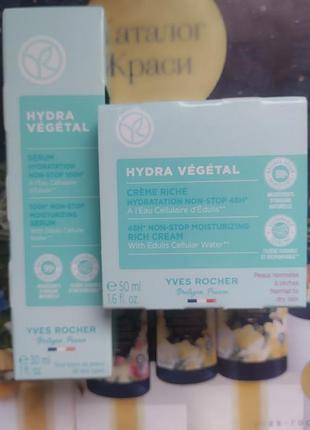 В наборе: 1. Сыворотка интенсивное увлажнение 100 часов 30 мл С первого применения сыворотки кожа непрерывно увлажнена в течение 100 часов(1), свежая и чувствует комфорт. Через 1 месяц кожа разглажена и сияющая. Тип кожи: все типы кожи. Текстура: ультра-свежая гелевая. Рекомендации по применению: наносите утром и вечером на лицо, избегая контура глаз, перед использованием основного ухода. Благодаря исключительным увлажняющим свойствам клеточной воды Эдулиса, экстракта алоэ и двум видам гиалуроновой кислоты (высоко- и низкомолекулярной) кожа глубоко наполняется влагой(2) во всех слоях эпидермиса. Подтвержденная эффективность: Увлажнение в течение 100 часов (1), свежесть и значительное улучшение состояния кожи уже с первого нанесения. После первого месяца нанесения сыворотки, кожа разглажена и наполнена естественным сиянием. 2. Крем интенсивное увлажнение 48 г 50 мл Крем с насыщенной текстуройинтенсивно питает кожу, мгновенно обеспечивает ощущение комфорта. В течение 48 часов он способствует непрерывному увлажнению, наполняет кожу изнутри, придает свежесть и сияние коже лица. Тип кожи: нормальный и сухой тип кожи Текстура : насичена оксамитова текстура Рекомендации по применению: наносите утром и вечером на предварительно очищенную кожу лица и шеи, избегая контур глаз. Эксперты Растительной Косметики® Yves Rocher выбрали Карпобротус Эдулис за его исключительные свойства накапливать влагу и удерживать ее в листьях. Уникальный растительный экстракт, Клетчатая вода Карпобротуса Эдулиса, полностью асимулируется кожей и обеспечивает ее длительное увлажнение: она накапливает* влагу во всех слоях кожи и удерживает* ее там надолго, в таковой способ обеспечивая непрерывное увлажнение кожи*. Обогащенный Клетиной Водой Эдулиса, активирует глубокое и длительное увлажнение. Формула протестирована под дерматологическим контролем.