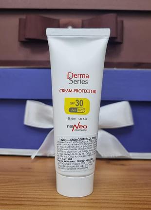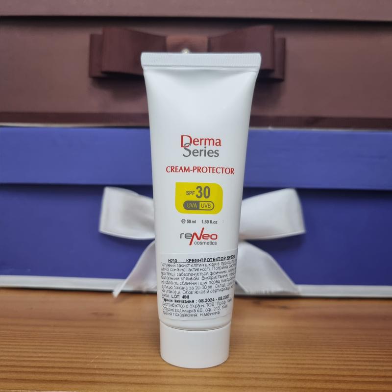 Derma Series Cream Protector SPF30 Крем протектор Мощная защита клеток кожи в период повышенной солнечной активности. Тройная система протекции обеспечивается физическим, химическим и биологическим воздействием: UV-лучи отражаются или блокируются, преобразовываясь в энергию, в то время как в коже стимулируются защитные, восстановительные, иммунные процессы. Идеально подобранная фотостабильная композиция фильтров защищает от всего спектра UVB и UVA-лучей. Крем рекомендуется применять даже после самых агрессивных эстетических методик: его действие исключительно защитное, а формула крема не содержит активно действующих компонентов, делая его абсолютно безопасным и крайне необходимым для ежедневного применения. Легко распределяющаяся текстура обеспечивает равномерное нанесение крема. Теперь кожа лица защищена, увлажнена и чувствует себя комфортно в самый знойный день!