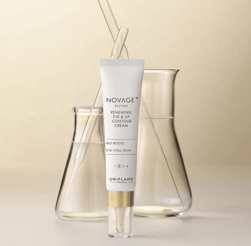 Код 41070 Срок 05.28 Многофункциональный антивозрастной крем для контура глаз и губ - разглаживает морщины, подтягивает кожу век, уменьшает отечность и темные круги под глазами. Подтягивает увядающую кожу век всего за 2 недели - и со временем дает эффект раскрытого взгляда** Контур губ становится более четким за 4 недели*** Биоактивные технологии направлены на борьбу с признаками гормонального старения кожи на всех этапах менопаузы. Омолаживающий крем для контура глаз и губ Novage+ Restore возвращает молодость твоим чертам. Помогает достичь четкости контуров и обеспечивает увлажнение, мгновенно освежая усталый взгляд и придавая ему сияние. + Запатентованная технология Bio-Boost#s делает кожу более плотной и упругой, стимулирует выработку коллагена и повышает уровень эластина◊ + Технология Eye Vital уменьшает темные круги и снимает отечность под глазами, а также эффективно подтягивает кожу век Ø1 Уже после 1 применения: + Помогает уменьшить отечность вокруг глаз* + Кожа вокруг глаз мгновенно успокаивается, получает питание и защиту* + Кожа вокруг губ мгновенно становится более увлажненной* В составе запатентованная биоактивная технология Bio-Boost, а также технология Eye Vital и ниацинамид. Нежный мягкий крем быстро впитывается, оставляя шелковистое ощущение на коже. Подходит для всех типов кожи, включая чувствительную. Офтальмологически и дерматологически протестировано.