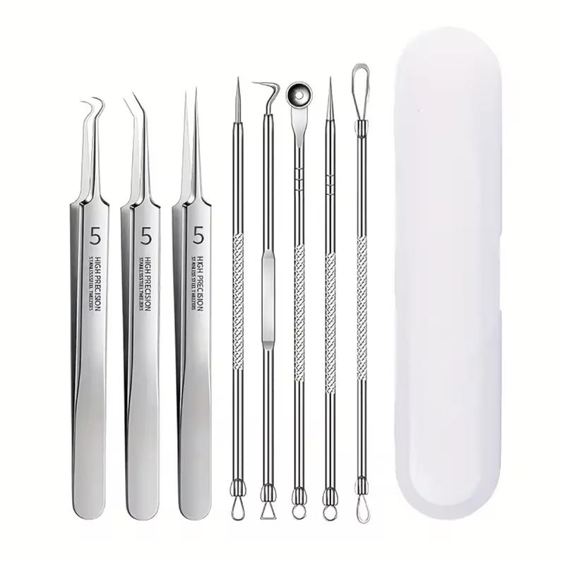 Набор инструментов в футляре для удаления акне угрей 8 шт. с пинцетами