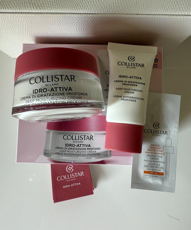 Набір в коробці. Новий. Оригінал. Крема запаяні. Строк крему 25 мл до 03.26, строк крему 50 мл до 09.26 зволожувальний крем Collistar Face IDROATTIVA+ 50 мл та 25 мл, також в наборі пробник захисного концентрату
