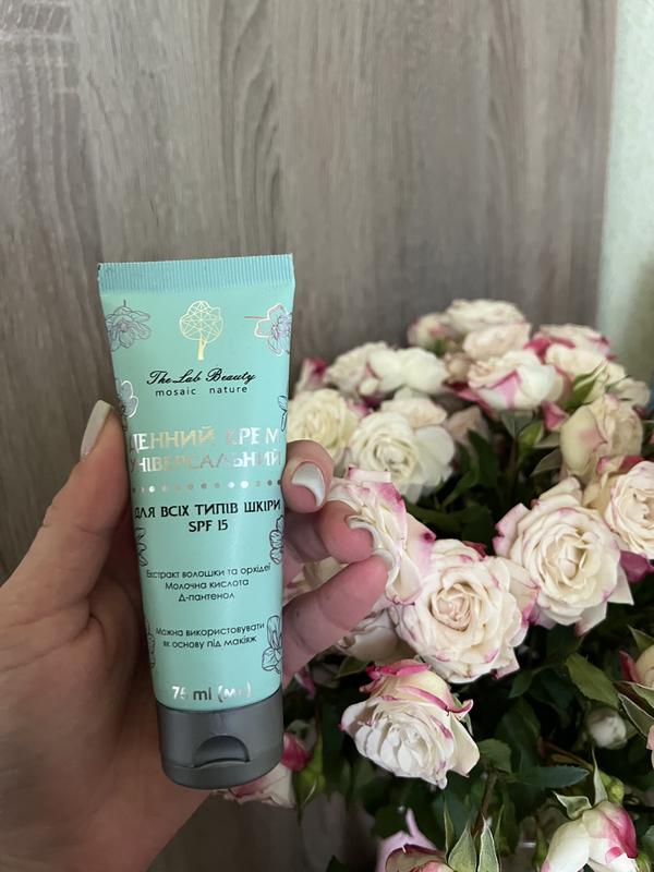 Денний крем The Lab Beauty (75 мл) | SPF 15 & • Стан: практично новий, використаний 1 раз! Повний обʼєм — 75 мл. Ідеальний універсальний денний крем для щоденного догляду. Підходить для всіх типів шкіри. Має легку текстуру та добре вбирається. Можна використовувати як основу під макіяж. • Активні компоненти: • Екстракт волошки та орхідеї • Молочна кислота • D-пантенол • SPF 15 — захист від сонця Надає зволоження, заспокоює