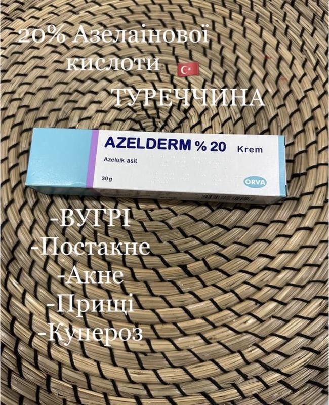 Крем Azelderm %20 входить до числа кремів, які дерматологи рекомендують тим, хто має проблеми з акне. Він допомагає шкірі швидко відновитися, запобігаючи росту та поширенню бактерій. Активний інгредієнт засобу – азелаїнова кислота. Вона пригнічує зростання мікроорганізмів, що беруть участь в утворенні прищів, та зменшує запальний процес, сприяючи загоєнню уражень. Гліцерин, що міститься в препараті, має сильну зволожуючу дію. Завдяки здатності швидко діяти, крем Азельдерм – перша допомога для шкіри з уже видимими змінами. Він регулює процес кератозу та відлущування епідермісу. За відгуками задоволених споживачів, поліпшення стану шкіри спостерігається після кількох застосувань Азельдерма. За його невисокої вартості, це величезна перевага. Крем спрямований на лікування: вугрового висипу; акне; купероза; розацеа; запалених вульгарних вугрів; темних плям на шкірі (меланодермія). В інструкції із застосування рекомендується застосовувати Азельдерм двічі на день: вранці та ввечері.