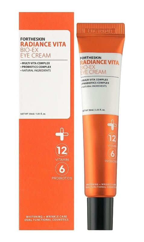Крем для век с эффектом лифтинга Fortheskin Radiance Vita Bio-Ex Eye Cream / крем для кожи вокруг глаз 30 мл. Крем для кожи вокруг глаз Fortheskin Radiance Vita Bio-Ex Eye Cream, 30 мл сроки до 01.2026 поэтому скидка Характеристики товара Крем для кожи вокруг глаз Fortheskin Radiance Vita Bio-Ex Eye Cream, 30 мл Бренд Fortheskin Страна производства Корея, Республика Вид Крем для кожи вокруг глаз Класс Натуральная Возрастная категория 25+ Время применения Универсальное Назначение Лифтинг От темных кругов под глазами Увлажнение Тип кожи Для всех типов кожи Степень защиты Без SPF Активный компонент Витаминный комплекс Пробиотик Объём 30 мл Описание товара Крем для кожи вокруг глаз Fortheskin Radiance Vita Bio-Ex Eye Cream, 30 мл Уставшая и тусклая кожа вокруг глаз? Верните ей сияние и молодой вид с питательным кремом Fortheskin! В его составе — витамины и пробиотический комплекс для осветления, разглаживания и оздоровления. Преимущества продукта Повышает эластичность, сокращает морщины. Эффективно питает, увлажняет и освежает. Контролирует гидролипидный баланс. Не оставляет ощущения жирности и липкости. Средство подходит для всех типов кожи. Как действует? Крем гелевого типа приятно ложится на кожу и быстро впитывается. Мультивитаминный комплекс (12 витаминов) активно ухаживает за потемневшей кожей и выравнивает тон. Пантенол поддерживает увлажненность. Пробиотики (6 видов) укрепляют защитный барьер и иммунитет кожи, нормализуют физиологический баланс. Фитокомплекс из 13 натуральных экстрактов (бобы мунг, чечевица, рожковое дерево, хиноки, белая ива, корица и др.) придает мягкость и шелковистость. Бьюти-советы Наносите крем плотным слоем перед сном, чтобы запустить интенсивную ночную ревитализацию. Используйте крем для лица и сыворотку серии Radiance Vita для усиления эффективности ухода и стабилизации результата. Как использовать Крем для кожи вокруг глаз Fortheskin Radiance Vita Bio-Ex Eye Cream, 30 мл Нанесите средство по массажным линиям вокруг глаз. Не наносите слишком близко к зоне роста ресниц. Если средство попало в глаза, промойте их большим количеством воды