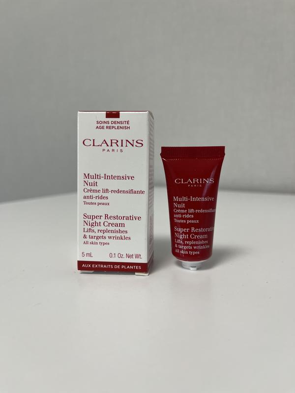 Super Restorative Night Cream Нічний крем Крем для шкіри обличчя Clarins Super Restorative Night Cream сприяє природним функціям шкіри, допомагає підтримувати її баланс і необхідний рівень зволоженості, забезпечуючи тим самим більш здоровий вигляд. Властивості: - відновлює пружність шкіри та підтягує її - розгладжує зморшки та запобігає їхньому утворенню - інтенсивно зволожує - глибоко живить Обʼєм: 5 мл.