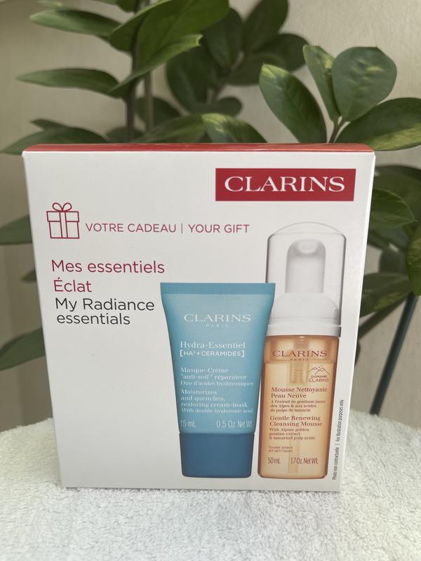 Набір догляду за обличчя Clarins. До набору входить делікатна очищуюча пінка для всіх типів шкіри 50мл та зволожуюча крем-маска для обличчя 15мл. Clarins Gentle Renewing Cleansing Mousse ефективно видаляє макіяж з обличчя, а також робить шкіру мʼякою, досконало чистою і підготовленою до наступних етапів догляду. Містить не менше 91% інгредієнтів природного походження. Очищувальна маска Clarins Hydra-Essentiel(HA) Mask чудово доповнить гель пінку чи крем і видалить із глибини пор усі залишки макіяжу й інші забруднення. Крім того цей засіб допоможе регулювати вироблення шкірного себуму та зменшить небажаний блиск шкіри. Країна виробник: Франція 🇫🇷 Термін придатності: 10. 2028 Обʼєм: 50+15мл