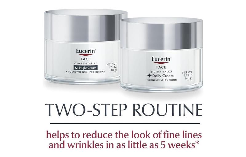 Набір кремів Eucerin денний +coenzyme Q10+Biotin та нічний +coenzyme Q10 + Pro-retinol Eucerin, відновлювальний денний крем для обличчя з коензимом Q10, без ароматизаторів, 48 г * Для ранкового застосування * Містить коензим Q10 та біотин * Для всіх типів шкіри * Не забиває пори * Бренд, рекомендований дерматологами * Клінічно доведена формула Візуально зменшує дрібні та глибокі зморшки всього за 5 тижнів*. Зволожувальний засіб зменшує дрібні та глибокі зморшки, а також допомагає підтягнути шкіру, надаючи їй оновленого та гладкого вигляду. Шкіра вашої мрії * Помітно розгладжені дрібні та глибокі зморшки * Більш гладка шкіра * Пружна та зволожена шкіра Збагачений коензимом Q10 та біотином Візуально зменшує наявні дрібні та глибокі зморшки. Зміцнює та зволожує шкіру, надаючи їй м’якість і гладкість. Рекомендації із застосування Масажними рухами наносьте на обличчя та шию щодня. Рекомендований режим: Використовуйте в поєднанні з нічним відновлювальним кремом для обличчя з Q10 Eucerin®. Eucerin ® Q10 проти зморшок + Pro Ретинол Нічний крем проти зморшок, зволожуючий нічний крем зробив для сухої, чутливої шкіри. Він спеціально розроблений, щоб не викликати роздратування і дбайливо ставитися до шкіри. * Покращує вид тонких ліній і зморшок всього за 5 тижнів. * Зволожує, роблячи шкіру більш м'якою і гладкою. * Не містить ароматизаторів, парабенів і барвників, не викликає комедонов Що таке коензим Q10? Коензим Q10 природним чином присутній в організмі і захищає його від процесу старіння. З віком кількість Q10 в шкірі зменшується. Нічний крем проти зморшок Eucerin ® Q10 допомагає заповнити запаси цього природного ферменту, який життєво важливий для здорового вигляду шкіри. Разом з вітаміном Е і про-ретинолом він утворює потужний антиоксидантний комплекс, що допомагає захистити від руйнівного впливу вільних радикалів. Зволожуючий крем для обличчя Q10 Anti-Wrinkle Face Cream - щоденний зволожуючий крем, який м'яко зменшує вигляд тонких ліній і зморшок всього за 5 тижнів. Рекомендації щодо застосування Наносити щовечора легкими масажними рухами на шкіру обличчя та шиї.