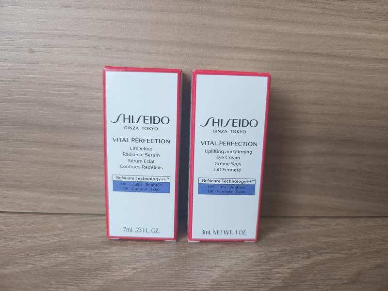 Мини набор shiseido vital perfection supreme kit включает: 1) Vital Perfection Uplifting & Firming Eye Cream укрепляющий крем вокруг глаз против морщин 3мл 2) Shiseido Vital Perfection LiftDefine Radiance Serum Сыворотка для лица и шеи 7мл Срок годности: до 03.2027р. В подарок к набору косметичка. Отдельно крем или сыворотка - 500 грн.