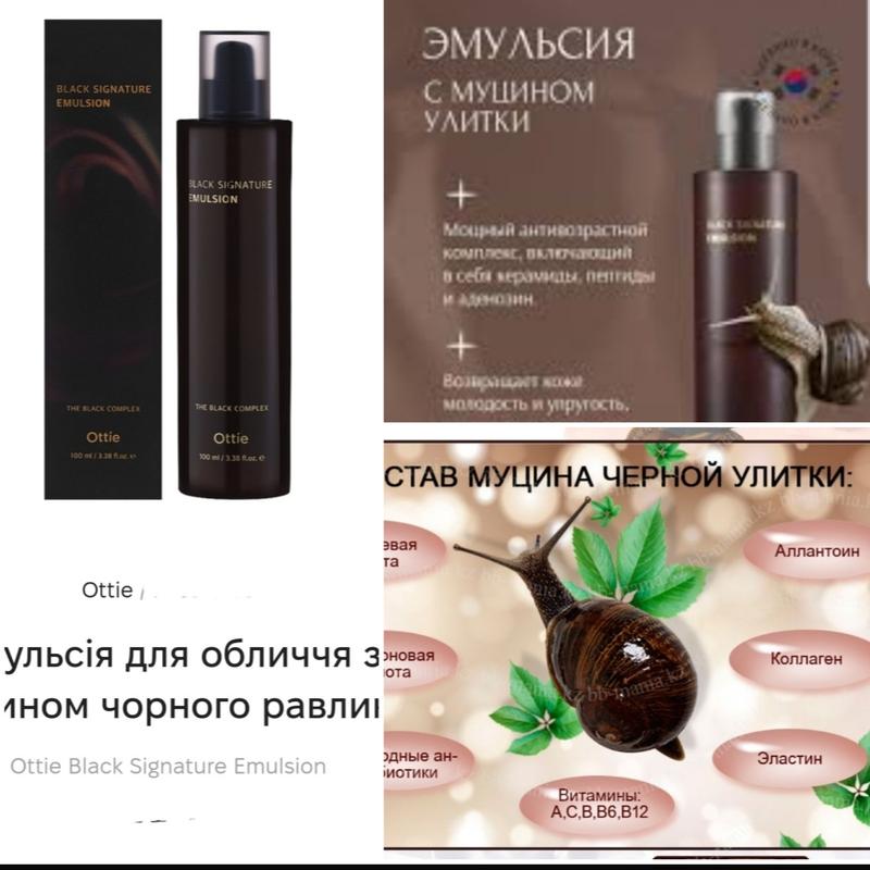 Ottie black signature emulsion эмульсия для лица муцином черной улитки