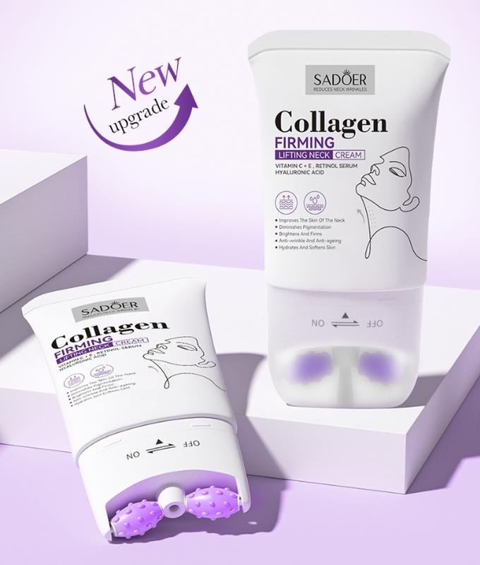 Крем з масажними роликам для обличчя та шиї з колагеном sadoer collagen firming neck cream...
