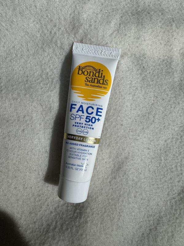 Будьте надійно захищені щодня. Насолоджуйтеся сонячним днем у стилі Bondi Sands із нашим щоденним зволожуючим лосьйоном для обличчя SPF 50+. Забезпечуючи захист від UVA та UVB, наша водостійка формула є ніжною, швидко вбирається та висихає до непомітного покриття. Формула забезпечує до 72 годин зволоження з додаванням алое вера та вітаміну Е, щоб ваша шкіра залишалася глибоко зволоженою. Можна носити окремо або під макіяж. Без парабенів. Без сульфатів. Дерматологічно перевірено та підходить для чутливої шкіри. Сприятливий до самозасмаги.