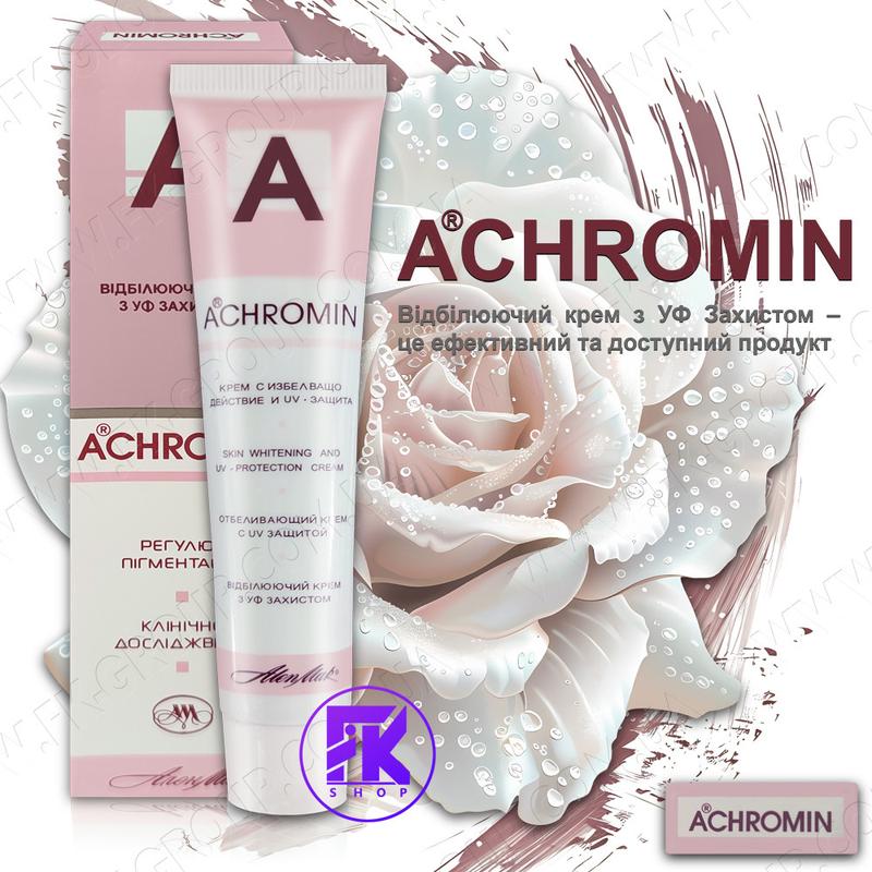 Крем Ахромин - специальный отбеливающий крем для избавления от пигментации с УФ-фильтрами, которые защищают кожу от негативного воздействия солнца. Он также помогает избавиться от следов после акне. Крем обладает легкой текстурой, быстро впитывается и имеет ненавязчивый аромат розы. Формула продукта включает в себя уникальный комплекс компонентов, дополненный УФ- фильтрами для защиты кожи от солнечных лучей. Активные вещества крема проникают в эпидермис, способствуя удалению любых типов пигментных пятен, начиная от чрезмерно темного загара и заканчивая возрастными изменениями. Кожа после применения этого крема становится более обновленной, светлой и сияющей природной красотой. В некоторых случаях рекомендуется сделать перерыв в использовании крема Ахромин на 4-5 дней, после чего возобновить нанесение только вечером, а через 4-5 дней начать применять его утром и вечером.
