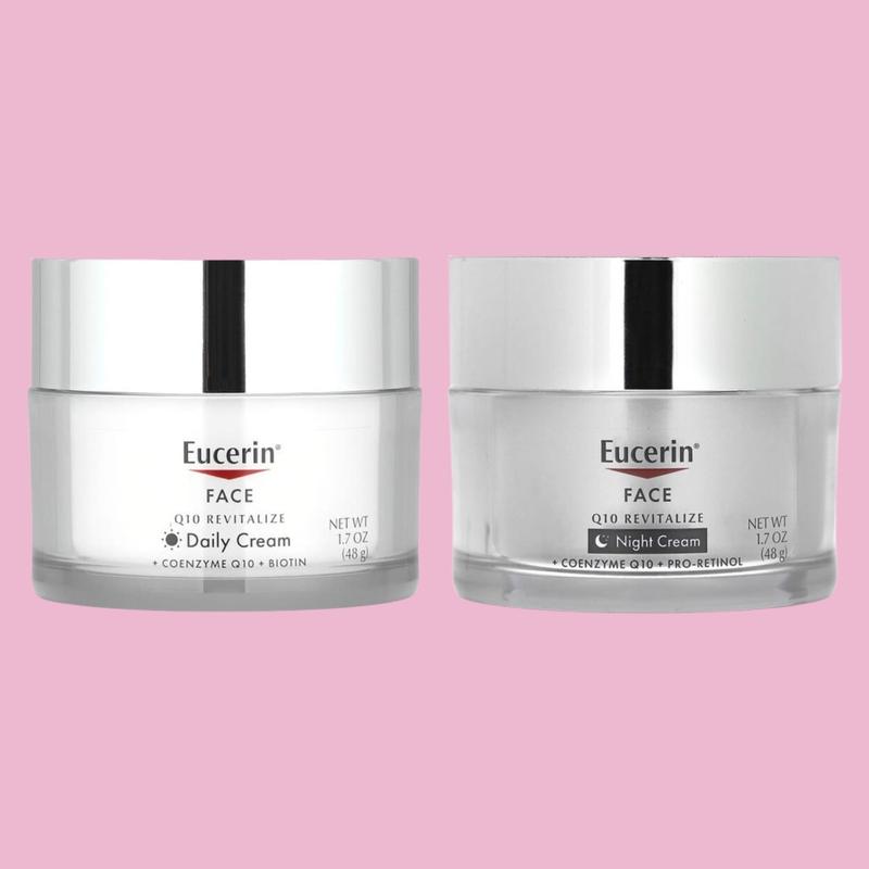 Опис Набір кремів для обличчя Eucerin з коензимом Q10 без ароматизаторів по 48 г кожен Eucerin, відновлювальний денний крем для обличчя з коензимом Q10, без ароматизаторів, 48 г Опис Для ранкового застосування Містить коензим Q10 та біотин Для всіх типів шкіри Не забиває пори Бренд, рекомендований дерматологами Клінічно доведена формула Візуально зменшує дрібні та глибокі зморшки всього за 5 тижнів*. Відновлювальний денний крем для обличчя Eucerin® із коензимом Q10 Зволожувальний засіб зменшує дрібні та глибокі зморшки, а також допомагає підтягнути шкіру, надаючи їй оновленого та гладкого вигляду. Шкіра вашої мрії Помітно розгладжені дрібні та глибокі зморшки Більш гладка шкіра Пружна та зволожена шкіра Наш засіб Збагачений коензимом Q10 та біотином Візуально зменшує наявні дрібні та глибокі зморшки. Зміцнює та зволожує шкіру, надаючи їй м’якість і гладкість. * У разі використання двічі на день. Рекомендації із застосування Масажними рухами наносьте на обличчя та шию щодня. Рекомендований режим: Використовуйте в поєднанні з нічним відновлювальним кремом для обличчя з Q10 Eucerin®. Eucerin, нічний крем для обличчя, Q10 Revitalize, без ароматизаторів, 48 г (1,7 рідк. унції) Опис Містить коензим Q10 і проретинол Візуально зменшує дрібні та глибокі зморшки всього за 5 тижнів* Нічний засіб Для всіх типів шкіри Не забиває пори Бренд, рекомендований дерматологами Клінічно доведена формула Видимі результати всього за 5 тижнів* Шкіра вашої мрії Помітно розгладжені дрібні та глибокі зморшки Пружна та зволожена шкіра Свіжий вигляд Наш засіб Збагачений коензимом Q10: візуально зменшує наявні дрібні та глибокі зморшки. Зміцнює та зволожує шкіру, надаючи їй м’якість і гладкість. Проретинол: помітно свіжіший колір обличчя та м’якіша шкіра. Відновлювальний нічний крем для обличчя Eucerin® із коензимом Q10 Зволожувальна формула збагачена ефективними антиоксидантами, коензимом Q10, вітаміном E та проретинолом, які допомагають захистити шкіру від пошкодження вільними радикалами. Цей засіб робить шкіру гладкою, пружною та свіжою. * У разі використання двічі на день. Рекомендації із застосування Увечері нанесіть масажними рухами на обличчя та шию.