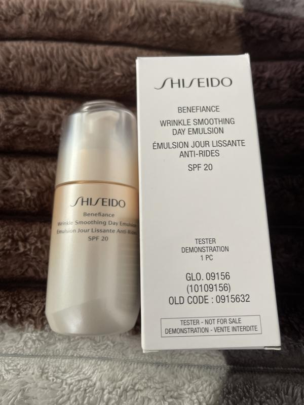 Захисна денна емульсія Shiseido Benefiance Wrinkle Smoothing Day Emulsion SPF 20 – ваш захист від часу та сонячних променів. З цим засобом ваша шкіра щодня відчуватиме себе омолодженою та повною сил. Емульсія сприяє інтенсивному зволоженню, розгладжуванню зморшок та створює надійний бар'єр проти ультрафіолету. Продукт не лише бореться з ознаками старіння, а й активно захищає шкіру протягом дня, зберігаючи її молодість та свіжість. Особливості Shiseido Benefiance Wrinkle Smoothing Day Emulsion SPF 20: - SPF 20 забезпечує захист від сонячних променів; - активні компоненти ефективно борються зі зморшками; - інтенсивне зволоження дарує комфорт на весь день; - легка текстура не залишає відчуття жирності; - підходить для щоденного використання будь-яким типом шкіри; - містить мінерали для покращення тонусу та пружності шкіри; - антивікові компоненти активізують регенерацію шкіри; - не містить парабенів, підходить для чутливої шкіри.