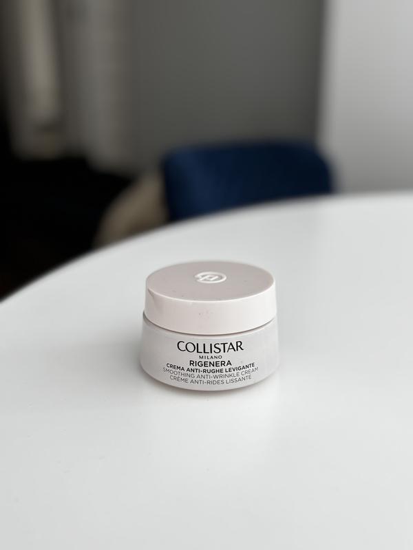 Повністю новий тестер крему Collistar Rigenera Smoothing Anti-Wrinkle Cream. Це антивіковий крем для обличчя та шиї, який розгладжує зморшки та покращує текстуру шкіри. Продукт використовує технологію біорегенерації клітин і Targeted Active Technology® для доставки інгредієнтів глибоко в шкіру. Активні інгредієнти включають низькомолекулярну гіалуронову кислоту, біоміметичні пептиди та меристематичні клітини італійської шипшини. Крем глибоко зволожує, тонізує шкіру, підвищує її пружність та еластичність.