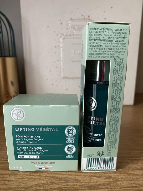 Крем для обличчя нічний 50мл і Сиворотка Lifting vegetal 30 мл нові Нічний крем і Сиворотка для обличчя Lifting Végétal від Yves Rocher – це продукт для обличчя та шиї, який має ліфтинг-ефект, зволожує та зміцнює шкіру. Крем містить рослинний колаген, екстракт мезембріантемуму кришталевого ("рослина життя") та гіалуронову кислоту, які разом стимулюють природні механізми омолодження шкіри, наповнюють її вологою та роблять більш пружною та еластичною.