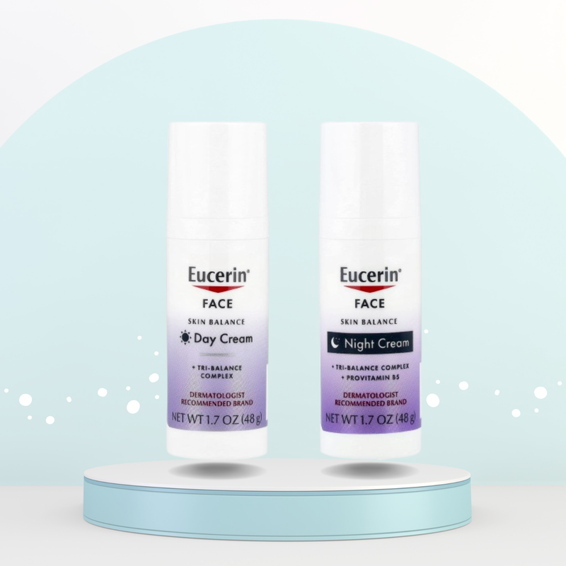Набор кремов для лица Eucerin Skin Balance в день и ночь по 48 г каждый Состав набора: Eucerin, дневной крем для лица, баланс кожи, 48 г Eucerin, ночной крем для лица, баланс кожи, 48 г Eucerin, дневной крем для лица, баланс кожи, 48 г Описание Для утреннего применения Успокаивает, увлажняет и укрепляет кожу, чтобы укрепить ее защиту + Комплекс Tri-Balance Не содержит распространенных раздражителей кожи Бренд, рекомендований дерматологами Для всех типов кожи, даже для чувствительной Без ароматизаторов Не забивает поры Не содержит распространенных раздражителей кожи Без ароматизаторов, консервантов Парабены, спирт, красители и парафины Клинически доказана формула Наше средство Збагачений комплексом Tri-Balance Заметно успокаивает сухую, неудобную кожу, при этом увлажняет, помогает поддерживать упругость и длительное облегчение. Технология безвоздушной упаковки Фильтры клапанов и усиленные уплотнения помогают защитить формулу без консервантов и подавляют окисление и внешние загрязнения, которые могут вызвать раздражение кожи. Кожа вашей мечты Более комфортная и увлажненная кожа Успокаивает сухую, чувствительную и заметно покрасневшую кожу Восстанавливается водный баланс Рекомендации по применению Утром нанесите массажными движениями на лицо и шею после очищения. Другие ингредиенты Вода, глицерин, масло ши (Butyrospermum parkii), пантенол, цетилпальмитат, метилпальмитат, растительное масло, пентиленгликоль, метилпропандиол, полиакрилат натрия, экстракт корня Glycyrriza inflata, 4-т-бутилциклогенол, каплипгликоль, гидроксид натрия, пантолактон, лимонна кислота. Eucerin, ночной крем для лица, баланс кожи, 48 г Описание Успокаивает, увлажняет и укрепляет Для поддержания упругости кожи ночью + комплекс Tri-Balance и провитамин B5 Для всех типов кожи Не забивает поры Без ароматизаторов и консервантов Парабены, спирт, красители, парафины и эмульгаторы Бренд, рекомендований дерматологами Наша клинически проверенная формула Подходит для всех типов кожи, даже для чувствительной Кожа вашей мечты Успокоение, увлажнение и ощущение комфорта кожи Восстановленный баланс влаги Кожа поддерживается в течение ночи Обогащен комплексом Tri-Balance для чувствительной кожи тремя способами: 1. Успокаивает Мгновенно успокаивает сухую кожу, что испытывает дискомфорт 2. Увлажняет Обеспечивает увлажнение, делая кожу более мягкой и сияющей 3. Укрепляет Поддерживает упругость кожи, обеспечивая длительное облегчение Ночной крем для лица Eucerin® Skin Balance Сочетает в себе отборные ингредиенты для укрепления защитных сил кожи для длительного облегчения состояния. Различные ингредиенты и агрессивные факторы окружающей среды могут раздражать кожу, вызывая ее видимый стресс, проявляется в виде сухости, тусклости, мелких и глубоких морщин. Формула, збагачена комплексом Tri-Balance Заметно успокаивает, увлажняет и укрепляет кожу, помогая поддерживать ее эластичность, делая ее более спокойной, мягкой и сияющей. Провитамин B5 кондиционирует и увлажняет кожу, оставляя ее восстановленной. Технология безвоздушной упаковки Клапанные фильтры и усиленные уплотнители помогают защитить формулу без консервантов и препятствуют окислению и внешним загрязнениям, которые могут вызвать раздражение кожи. Рекомендации по применению Вечером нанесите массажными движениями на лицо и шею после очищения. Другие ингредиенты Вода, глицерин