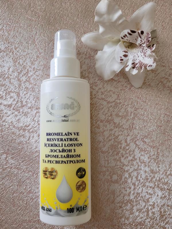 Регенерация и защита кожи, устранение поврежденной кожи с низким содержанием кератиновых и эластиновых клеток, помогает предотвратить образование свободных радикалов на коже, помогает уменьшить темные пятна и неровности тона кожи, делает кожу более гладкой и здоровой, замедляет признаки старения, повышает эластичность кожи, помогает уменьшить появление шрамов, растяжек и морщин на коже. И это только часть возможностей новинки от Эрсаг - Лосьона с содержанием бромелайна и ресвератрола. Код по каталогу Ersag: 624. Форма выпуска: 100 мл. А теперь подробнее о Лосьоне с бромелайном и ресвератролом. 1. Бромелайн - это смесь ферментов, содержащихся в стебле и стебле ананаса. Бромелайн, одно из веществ, используемых для лечения заболеваний, помогает уменьшить воспаление в клетках организма благодаря своему противовоспалительному действию. 2. Благодаря своему противовоспалительному и протеолитическому действию, которое способствует росту новых и здоровых тканей, бромелайн способствует регенерации кожи, удаляя омертвевшие клетки кожи при местном применении 3. При нанесении на кожу бромелайн улучшает кровообращение, помогая уменьшить боль и жжение. 4. Ферментативная смесь на основе бромелаина, используемая для лечения ран в некоторых проведенных клинических испытаниях, показана с положительными результатами при лечении поврежденной кожи с низким содержанием кератиновых и эластиновых клеток 5. Бромелайн, полученный из ананаса, содержит соединения с высоким содержанием антиоксидантов. Благодаря своим антиоксидантным соединениям он помогает предотвратить образование свободных радикалов на коже. 6. Бромелайн помогает уменьшить темные пятна и неровности тона кожи, которые могут образовываться на коже, и способствует ровному тону кожи. 7. Ресвератрол - это растительное соединение, полученное из красного винограда и обладающее антиоксидантными свойствами. При местном применении ресвератрол выполняет одну из основных функций - помогает защитить поверхность кожи. 8. Ресвератрол помогает защитить кожу от внешних факторов окружающей среды и УФ-излучения. 9. Ресвератрол с высоким содержанием антиоксидантов помогает укрепить естественный барьер вашей кожи, делая кожу более гладкой и здоровой. 10. Ресвератрол способствует пролиферации здоровых клеток и синтезу белков кожи, помогая замедлить признаки старения). 11. Ресвератрол способствует повышению эластичности кожи. Коллаген помогает предотвратить старение, стимулируя ткани. Способствует формированию более полной и молодой кожи. 12. Ресвератрол помогает коже успокоиться, уменьшая появление покраснений и воспалений на коже. 13. Сладкий миндаль обладает антибактериальными и противовирусными свойствами благодаря содержащимся в нем полифенолам). Это помогает предотвратить появление прыщей, вызванных бактериями. 14. Витамин Е, содержащийся в сладком миндале, помогает уменьшить появление шрамов, растяжек и морщин на коже. ПРИМЕНЕНИЕ: Чтобы лосьон легче впитывался, его следует наносить на очищенную кожу круговыми движениями. Подходит для повседневного использования. Рекомендуется использовать его регулярно. ПРЕДУПРЕЖДЕНИЕ: Если ваша кожа чувствительна к ингредиентам продукта проверьте его на небольшом участке кожи на наличие аллергической реакции.