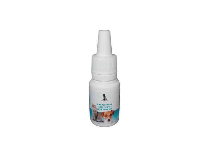 Чистые глаза без слизистых и гнойных выделений - индикатор здоровья домашнего любимца. Правильный уход за глазами поможет животному сохранить острое зрение до самой старости. Капли для животных FavoritePets Чистые глаза обладают противовоспалительным, антисептическим и противоотечным действием, применяются для ежедневной гигиены глаз животного и при конюнктиве легкой степени. Действие средства обусловлено активными веществами, входящими в его состав. Тауфон стимулирует процессы восстановления и регенерации глазных тканей. Янтарная кислота - природный антиоксидант, широко используется при различных заболеваниях глаз, оказывает заживляющее действие, стимулирует окислительно- восстановительные процессы, замедляет развитие катаракты, идеально для чувствительных глаз. Хлоргексидина беглюконат оказывает антисептическое и дезинфицирующее действие. Состав: вода очищенная, таурин (0,02 г/мл), янтарная кислота (0,001 г/мл), хлоргексидина беглюконат (0,00015 г/мл), алкилдаметилбензиламоновий хлорид. Способ применения: для ежедневной гигиены глаз и при конюнктивите легкой степени стерильным марлевым тампоном, смоченным каплями, удаляют из внутреннего угла глаза жидкость, после чего средство закапают в конюнктивальный мешок животным весом до 10 кг по 1 капли, собакам весом более 10 кг - по 2 капли. Закапывание проводят 1-3 раза в день при необходимости с 5-10 дневным перерывом: - при обработке глаз 1 раз в день капли применяют не более 45 дней, после чего делают 10-дневный перерыв; - при обработке глаз 2 раза в день капли применяют не более 20 дней, после чего делают 7-дневный перерыв; - при обработке глаз 3 раза в день капли применяют не более 14 дней, после чего делают 5-дневный перерыв. При избыточном слезоте, красных глазах, травмах, попадании чужеродных предметов или раздражающих веществ средство закапают по 1-2 капли 3 раза в день 5-14 дней. Меры предосторожности: в рекомендуемых количествах средство не оказывает местно-раздражающего действия. Побочных явлений и осложнений при применении