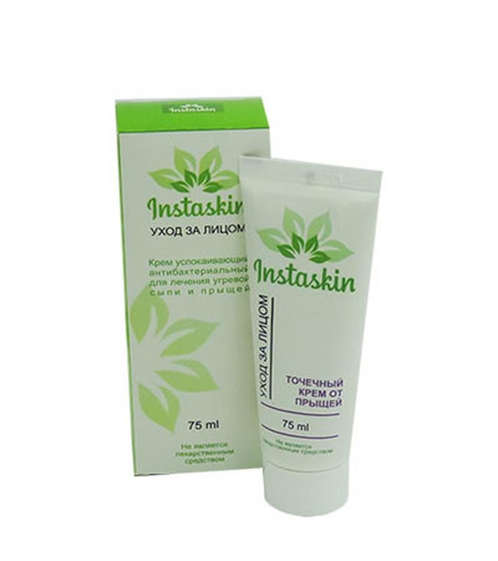 Полезные свойства и преимущества Instaskin Крем от прыщей Instaskin приносит организму следующие полезные воздействия: - Нормализует гормональный фон, который и является основным источником появления прыщей и угрей. - Подавляет рост бактерии без антибиотиков. - Препятствует развитию воспалительных процессов на коже. Обладая вышеперечисленными полезными свойствами, косметический препарат имеет неоспоримые преимущества: - Натуральный состав позволяет использовать комплекс людям с чувствительной кожей. - Не имеет ГМО, красителей и других химических добавок в составе. Это позволяет использовать препарат даже аллергикам. - Гладкость кожи на ощупь благодаря ускоренному процессу регенерации. - Не вызывает резистентности (привыкания или устойчивости организма в случае частого использования лекарства). - Убирает застарелые следы от прыщей. - Не нарушает микрофлору кишечника. - Противопоказания отсутствуют. - Крем и порошок могут использовать люди любого возраста и пола. - Отличное сочетание цены и качества. - Быстродействующий и длительный эффект. - Набирает большую популярность среди косметических средств, созданных для борьбы с угревой сыпью и прыщами. - Быстрое действие благодаря комплексному подходу. Состав препарата Instaskin от угрей и акне В состав крема входят только природные и натуральные компоненты. Их действие проверено многими специалистами в области дерматологии, эндокринологии и косметологии. Итак, в состав точечного крема входит: - Азелаиновая кислота. Её действие направлено на борьбу с ростом бактерий, вызывающих развитие угревой болезни. Обладая кератолитическим эффектом, кислота замедляет их рост и деление. Кроме этого, она имеет и противомикробные способности: проникая в середину молекулы бактерии, кислота останавливает её активную жизнедеятельность. - Гидролат розмарина. Это мощное тонизирующее антиоксидантное средство. Действие гидролита направлено также на очищение кожи от гнойных и воспалительных угрей, при этом повышает эластичность кожи. - D-пантенол – «витамин красоты». Он просто незаменим: успокаивает и увлажняет кожу, снимает воспаление, разглаживает мелкие морщинки. Инструкция по применению Для того, чтобы Instaskin работал на полную мощь, следует соблюдать данные рекомендации и советы: - Перед точечным нанесением крема следует очистить кожу косметическими средствами (молочком, пенкой для умывания, мицеллярной водой и т.п). - Эмульсия наносится на прыщики и проблемные места точечно. Не стоит растирать крем по всему лицу, затрагивая здоровую кожу. - Не смывать, подождать пока полностью впитается. - Для 100% эффекта применять не более 30 дней. Характеристики Основные Страна производитель Индия Проблема кожи Прыщи Объем 75.0 (мл) ~~~~