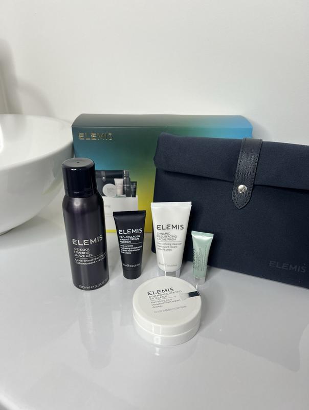 Дуже красивий набір з косметикою) В наборі є: - Гель для вмивання Elemis Dynamic Resurfacing, 30 мл. Продукт має очищувальну, зволожувальну, кондиціонувальну, заспокійливу та м’яку відлущувальну дію, вирівнює колір обличчя і надає сяяння. -Пади для шкіри Elemis Dynamic Resurfacing, 14 шт. Вони видаляють зроговілі клітини, активізують обмінні процеси шкіри, покращують її колір та текстуру й зменшують пігментні плями. - Крем для обличчя Elemis Pro-Collagen Marine, 15 мл. Засіб має зволожувальні, антивікові, зміцнювальні властивості, зменшує появу зморщок, надає шкірі еластичності, пружності та шовковистості. - Пінка-гель для гоління Elemis Ice Cool, 100 мл. Завдяки алое вера, гамамелісу та англійському дубу продукт забезпечує охолоджувальний, захисний, протизапальний, зволожувальний, заспокійливий, пом’якшувальний ефект, полегшує гоління й огортає приємним ментоловим ароматом. -Ліфтинг-крем для шкіри навколо очей Elemis Pro-Collagen Vitality Eye, 4 мл. Він ефективно відновлює, зволожує, освіжає чутливу шкіру навколо очей, зменшує темні кола та набряки й надає сяяння. -Косметичка. Зручний стильний аксесуар для зберігання косметичних продуктів.