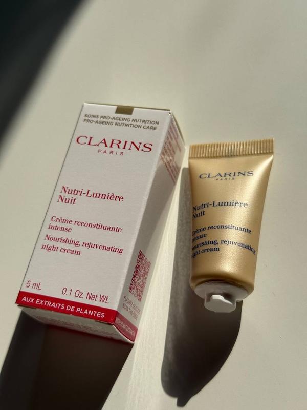 Працюємо по повній передплаті на реквізити ФОП. Нічний омолоджувальний крем Clarins Nutri-Lumière Nuit міні по 5мл ціна 218грн/шт Вік: 60+ Подаруйте шкірі сяйво зсередини і повноцінний догляд з Nutri-Lumière Nuit Nourishing Rejuvenating Night Cream бренда Clarins. Крем активно живить шкіру. Вже після першого використання ви відчуєте комфорт і прилив свіжості. Формула заснована на органічних компонентах, які зможуть зберегти молодість, здоров'я і красу вашої шкіри. - має ніжну консистенцію; - швидко вбирається; - підійде для всіх типів шкіри; - має приємний і підбадьорливий аромат; - бореться з ознаками старіння, такими як зморшки і пігментні плями; - містить екстракт квітів і молекули плодів каштана; - тонізує; - робить шкіру еластичною, пружною і підтягнутою; - нічний - працює поки ви відпочиваєте; - вирівнює тон і мікрорельєф шкіри обличчя; - легко наноситься і рівномірно розподіляється; - активна дія протягом 24 годин.