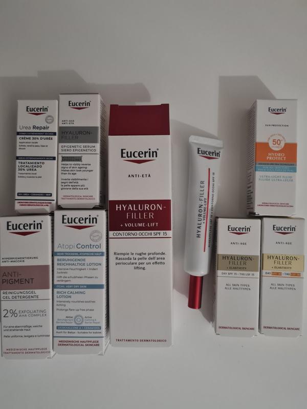 Набор антивозрастной крем-лифтинг для восстановления контура кожи вокруг глаз eucerin hyaluron-filler volume-lift spf 15. Объем 15 мл до 12.26 г. При покупке в подарок образцы ухода! Kрем для восстановления контура глаза Eucerin Hyaluron-Filler+Volume-Lift для всех типов кожи предотвращает образование морщин и обвисание кожи, вызванных уменьшенным объемом, особенно в нежном участке вокруг глаза. Благодаря трем активным компонентам, которые проникают в самые глубокие слои кожи, эта клинически испытанная формула помогает восстановлению контура кожи вокруг глаз и укрепляет его. Одержанный естественным образом магнолол увеличивает размер и количество клеток, которые создают объем в то время как олигопептиды укрепляют коллагеновую сетку, тем самым предотвращая образование новых морщин. Между тем гиалуроновая кислота действует на поверхность кожи, повышает уровень содержания влаги и смягчает морщины, которые чаще всего образуются вокруг уголков глаз из-за сухости. Крем содержит УФ-защитный фактор 15, который помогает оберегать нежную область вокруг глаза от фото-индуцированного старения.Производяемый офтальмологически. Не вызывает комедонов, не содержит духов и спирта.