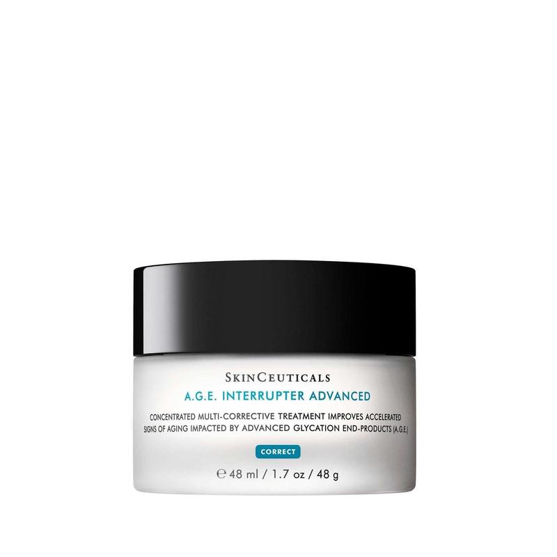SkinCeuticals A.G.E. Interrupter Advanced -- высокоэффективный антивозрастной крем, созданный для борьбы с гликацией -- одной из главных причин преждевременного старения кожи. Формула разработана с использованием передовых дерматологических технологий и нацелена на глубокие морщины, потерю плотности и эластичности, сухость и дряблость кожи. * * * Основные преимущества: - Значительно уменьшает глубокие морщинки и возрастные заломы - Улучшает плотность, упругость и эластичность кожи - Восстанавливает комфорт и уменьшает сухость, связанную со старением - Выравнивает тон и возвращает коже здоровое, наполненное сияние - Помогает бороться с процессами гликациикоторые приводят к разрушению коллагена * * * Активные компоненты: - 18% Proxylane™ -- мощный компонент, усиливающий плотность и упругость кожи - 4.25% растительных флавоноидов - антиоксиданты, нейтрализующие свободные радикалы - Предионизированные экстракты ягоды черники - замедляют процесс гликации и сохраняют гибкость волокон - Липиды и смягчающие компоненты - глубоко увлажняют и укрепляют барьер кожи * * * Текстура: Нежная, комфортная, быстро впитывается, не оставляет жирного блеска и ощущения пленки. * * * Результаты: При регулярном применении кожа становится заметно более гладкой, плотной, более упругой и сияющей. Морщины сокращаются, а контур лица выглядит более подтянутой. * * * Способ применения: Наносите 1-2 раза в день на очищенную кожу лица, шеи и декольте. Может использоваться в сочетании с сыворотками SkinCeuticals. * * * Подходит для: - зрелой кожи - кожи с выраженными признаками старения - сухой, тонкой и меньшей упругости кожи