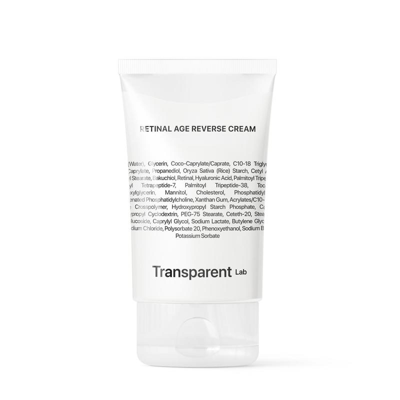 Retinal Age Reverse Cream — це найбільш інноваційна формула Transparent Lab проти ознак вікових змін. Потужний anti-age крем, здатний ініціювати регенерацію клітин і вироблення колагену, щоб зменшити зморшки та мімічні лінії. Крем Retinal Age Reverse Cream містить 4 потужні активні інгредієнти, що запобігають проявам вікових змін, щоб допомогти відсунути вплив часу. Доведено, що Retinal не подразнює шкіру і є найефективнішою формою вітаміну А, високопроникної гіалуронової кислоти, пептидів проти старіння та бакучіолу. Ви побачите результати на обличчі з перших застосувань. Відкрийте для себе догляд для підтримки молодості та балансу шкіри завдяки цьому високоефективному крему проти вікових змін!