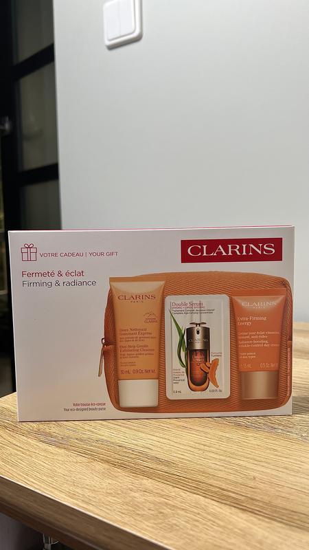 Набір Clarins містить крем для обличчя 15ml Живлення, Зволоження, Зміцнення, підходить для всіх типів шкіри Скраб для обличя 30ml Демакіяж, Ексфоліація, Очищення, для всіх типів шкіри Сироватка Double Serum 0.9ml Косметичка Виробник Франція, оригінал Термін до 12.2028