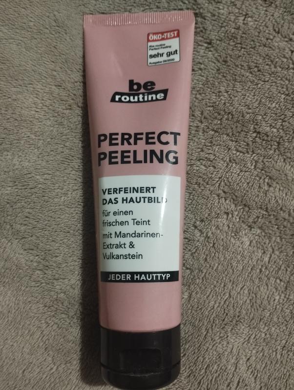 Это пилинг для лица Be Routine Perfect Peeling, 100мл. Удаляет омертвевшие клетки кожи и очищает поры. Содержит экстракт мандарина и вулканический камень. Подходит для всех типов кожи. Получил оценку "очень хорошо" от ÖKO-TEST в выпуске 09/2020. Текстура меняется при контакте с водой.