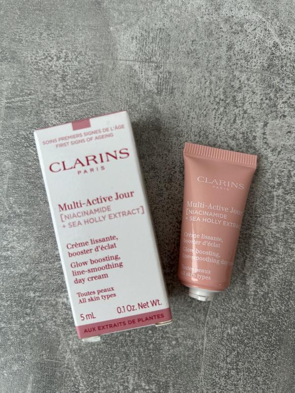 Суперзаряджена шкіра, що здатна протистояти будь-якому стресу! Уявіть, що ми в Clarins здатні запропонувати вам рішення, завдяки якому ознаки старіння та втоми на шкірі можна було 6 зменшити майже на 50%? Сучасне життя змушує рухатися в швидкому темпі. Ми створили формули, що допоможуть запобігти появі ознак стресу та втоми. Це колекція денних і нічних кремів Multi-Active, що підходять як для жінок, так і чоловіків. Всі версії кремів містять інноваційний комплекс Skin Charging Complex. Він зберігає енергію всередині клітин шкіри, не даючи змоги стресовим чинникам почати свої руйнівні дії. Комплекс містить такі складові: ніацинамід: противікова молекула, також відома як вітамін В3. Стимулює синтез колагену і покращує текстуру шкіри; екстракт морського чортополоху: дивовижно витривала рослина може розвиватися в найскладніших умовах виживання. Її міцність покладена в основу концепції комплексу, спрямованої на підсилення функцій шкіри; екстракт суничного дерева: зменшує розмір пор, покращує текстуру шкіри; бетаїн: зволожує і наповнює шкіру зсередини. Денна версія крему має приємний легкий аромат, що складається з нот конвалії, бергамота, троянди та білих квітів.