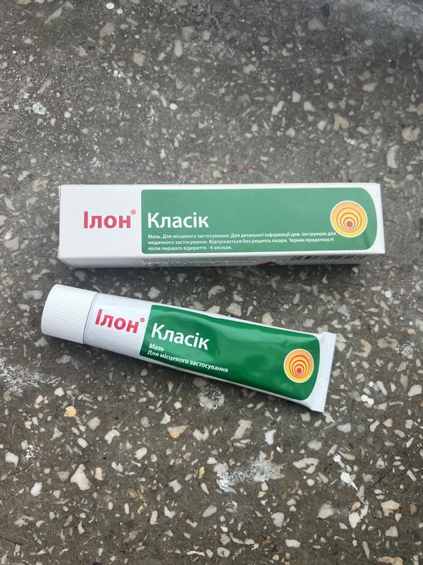 Був у використанні лише раз. Причина продажу - зміна догляду💕 Фармакологічні властивості фармакодинаміка. Ілон Класік є рослинним лікарським препаратом, який сприяє кровопостачанню ураженої ділянки шкіри, знімає запалення і чинить дезінфікуючу дію. Мазь сприяє дозріванню та прориванню абсцесу, при цьому гній повністю витягується, що запобігає капсуляції гнійних середовищ запалення, які не повністю спорожнені. Фармакокінетика. Фармакокінетичні дослідження не проводилися. Показання Ілон Класік лікування помірних, локалізованих гнійних запалень шкіри, таких як абсцеси, фурункули, гнійні вузлики, запалення волосяних фолікулів і потових залоз. Застосування Ілон Класік лікарський засіб для місцевого застосування. Ретельно очистити ділянку запалення спиртом або іншим дезінфекційним засобом перед застосуванням. Уникайте будь-якого тиску на уражену ділянку шкіри. Залежно від площі запалення шкіри, нанести смужку мазі, довжиною 2–3 см, і накрити рану пов’язкою. Пов’язку слід міняти щодня. Дітям віком до 6 років не рекомендується застосовувати мазь Ілон Класік. Тривалість використання. Для успішного результату лікування може потребуватися застосовування мазі Ілон Класік принаймні 3 дні. Якщо симптоми зберігаються довше 3 днів під час застосування лікарського засобу, слід звернутися до лікаря. Діти. Для дітей віком від 6 років
