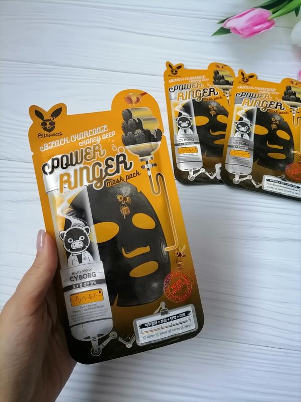 Тканинна маска для обличчя з деревним вугіллям та медом elizavecca