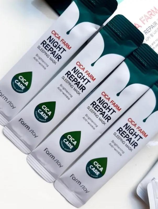 Успокаивающая ночная🌃 маска Cica Farm Night Repair Sleeping Mask эффективно устраняет различные дерматологические несовершенства, увлажняет, снимает воспаления и раздражения, защищает от вредного воздействия окружающей среды.. 💫Активные компоненты запускают регенерацini процессы, стимулирует продукция собственных коллагеновых волокон, повышает эластичность и упругость кожицы. 💫Экстракт центеллы азиатской восстанавливает иммунную функцию эпителия, снимает отечность, укрепляет стенки сосудов, снижает интенсивность куперозной сетки. 💫Ниацинамид заполняет межклеточное пространство, выравнивает тон и рельеф эпидермиса, предупреждает его древесные смочки. Экстракт сахарного тростника интенсивно увлажняет, очищает и сужает поры, делает лицо подтянутым, упругим и контурированным. Уже после первой процедуры🙀 Применение: На очищенную и тонизированную личность нанесите средство, равномерно распределите его по поверхности, оставьте на ночь. Цена меньше чем за чашечку кофе😉 🏷️ 25 грн.
