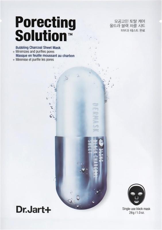 Розширені пори – це сприятливе місце для життєдіяльності бактерій, які спричиняють акне та інші вади шкіри. Якщо просто вмитися, то проблема не зникне, тут потрібен продукт з глибшим спектром дії. Саме таким є Dr. Jart+ Porecting Solution Dermask. Корейські фахівці розробили унікальну формулу просочення тканинної маски на основі вугілля, завдяки якому забруднення адсорбуються, а кисневі пухирці буквально виштовхують себум з пор. Продукт для догляду також збагачений такими натуральними компонентами, як мастикова камедь, екстракти авокадо, евкаліпта, сумахи і аспарагуса. Вони стимулюють клітинну активність і забезпечують потужний ліфтинг-ефект. Аденозин і екстракт стебла спаржі вирівнюють тон шкіри, а також стимулюють синтез колагену й захищають від фотостаріння. Спосіб застосування: очистіть шкіру і нанесіть тонер. Нанесіть маску, регулюючи ділянки навколо очей і рота. Бульбашки очищають пори. Залиште на 10-20 хвилин. Видаліть маску і поплескувальними рухами розподіліть на обличчі залишки сироватки.