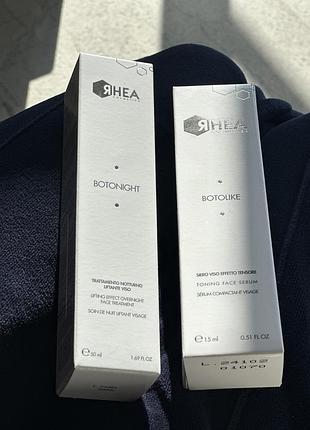 Якщо вам потрібна миттєва підтяжка обличчя, ви можете використовувати нашу сироватку Rhea Cosmetics BotoLike з VenomPeptide, пептидом, який імітує отруту гадюки для розгладження зморшок. Для забезпечення тривалого ефекту ми поєднали його з пептидом LiftPeptide, який розслаблює мімічну мускулатуру, посилюючи ефект розгладження. В результаті сироватка з ботоксоподібною дією: смертельно небезпечна для зморшок та тонких ліній. Нічний ліфтинг-догляд Rhea Rhea BotoNight — маска з сильним ефектом ліфтингу, яка помітно покращує овал обличчя. Засіб надає шкірі додаткової еластичності й тонусу, роблячи її зранку свіжішою, пружнішою і помітно молодшою. Формула продукту розроблена таким чином, щоб активні інгредієнти впливали на шкіру, стимулюючи її неврологічні процеси. VenomPeptide — пептид, що імітує отруту гадюки, для розгладження зморшок. Matrikine відновлює пошкодження шкіри, спричинені старінням. ChronoComplex посилює природний захист епідермісу від шкідливого впливу довкілля. Він також оживляє та зміцнює шкіру. Як використовувати Наносити на очищену шкіру на ніч (замість або поверх вашого нічного крему). Вранці змити водою.