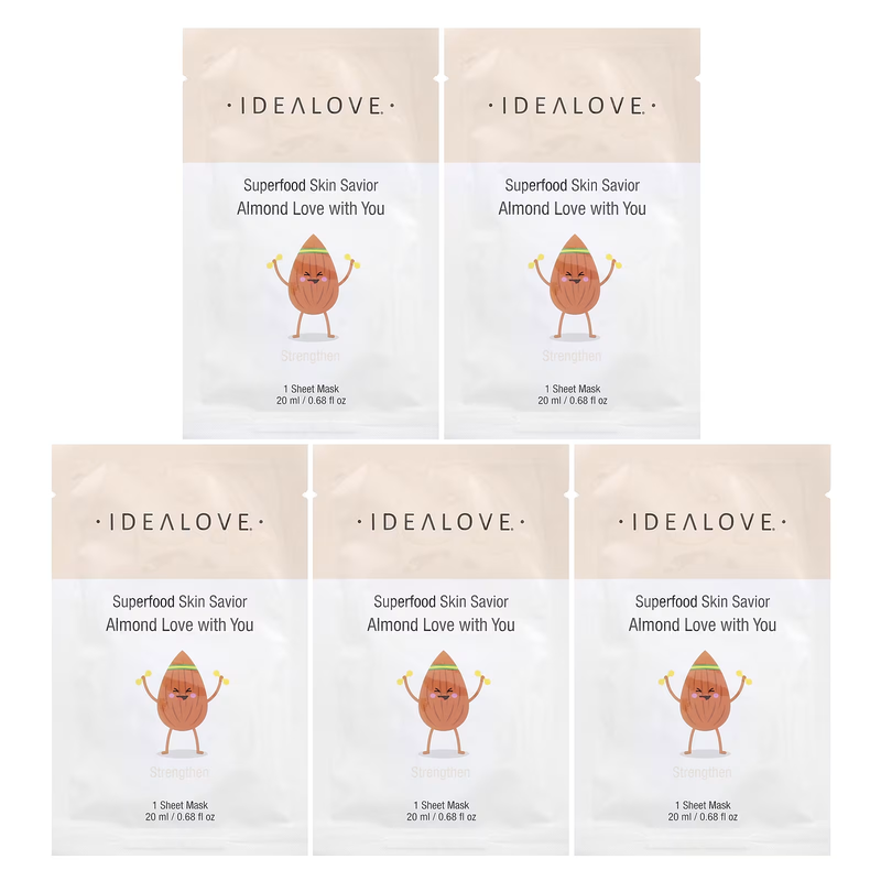 Набор тканевых масок с суперфудами idealove superfood skin savior миндаль, 5 шт по 20 мл