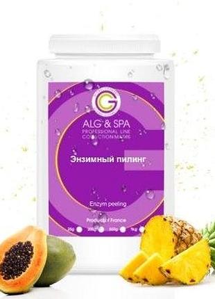 Опис: Маска «Ензимний пілінг» розроблена експертами краси відомого бренда ALG&SPA; для того, щоб забезпечити якісний догляд для шкіри обличчя. До складу Professional Line Collection Masks Enzym Peeling входять ферменти папаї й ананаса, які активізують оновлення клітин епідермісу, м'яко, не пошкоджуючи шкіру, відлущують ороговілий шар, проводять оновлення шкірного покриву, глибоко його очищають і освітлюють. Маску можна використовувати і як масажний засіб — робити масаж обличчя до 20 хвилин, за потреби зволожуючи руки водою. Косметичний продукт стимулює життєдіяльність клітин епідермісу, а також тонізує й заспокоює. Маска чудово очищає шкіру, виводить токсини, прискорює процес регенерації тканин і покращує природну еластичність шкірного покриву Спосіб застосування: 5 г порошку змішати з 5 мл прохолодної або теплої води 20o С.