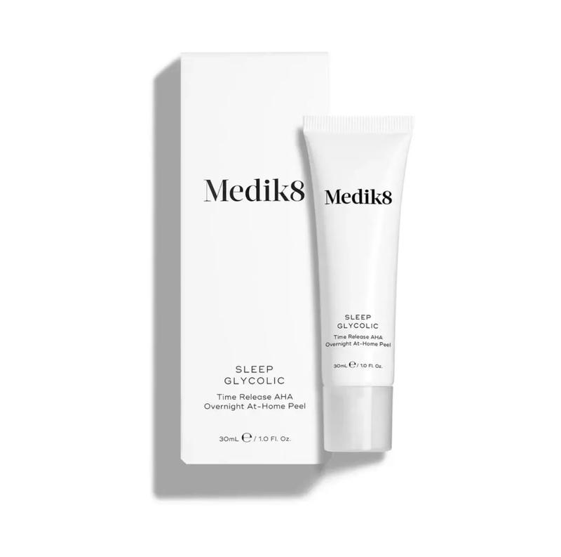 Medik8 Sleep Glycolic, 30ml. Нічна сироватка з гліколевою кислотою (АНА) для домашнього пілінгу. Формула працює, поки ви спите, й забезпечує помітні швидкі результати при нульовому періоді реабілітації. ГОЛОВНІ ПЕРЕВАГИ Цей продукт застосовується двічі на тиждень й швидко оновлює нерівномірну текстуру та тьмяний тон, вирівнює поверхню, відновлює сяйво шкіри. РЕЗУЛЬТАТИ Sleep Glycolic використовує потенціал цілих 10% активної гліколевої кислоти й забезпечує глибоке очищення, ефективне розгладжування та природне освітлення шкіри Повна вартість 2304грн.