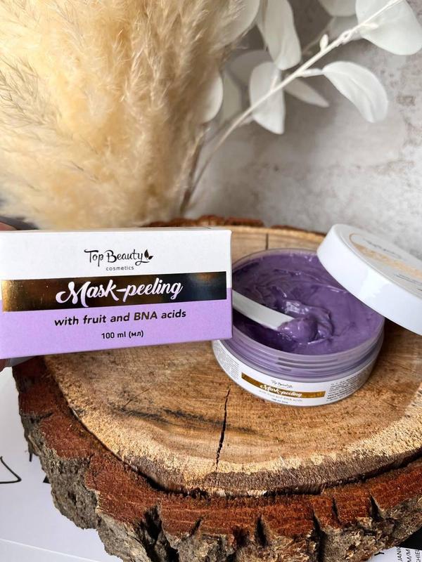 Маска-пілінг для обличчя, шиї та зони декольте відлущує відмерлі клітини з поверхні шкіри, допомагаючи очистити пори, стимулює синтез природного колагену, розгладжує зморшки, сприяє збереженню пружності, зменшує гіперпігментацію. Засіб має зволожуючі, поживні, освітлювальні, протизапальні властивості. Активні компоненти маски-пілінгу, що очищає: - AHA-кислоти - яблучна, лимонна, молочна, гліколева: пом'якшують ороговілості , прискорюючи оновлення епідермісу; - ВНА саліцилова кислота: у складі маски, що очищає, прибирає жирний блиск, зменшує запалення і подразнення шкіри; - екстракт чорниці - освітлює пігментні плями, запобігає появі зморшок, живить та насичує вітамінами, вирівнює тон шкіри, підтримує пружність; - екстракт буряка - зволожує шкіру, допомагає підтримувати необхідний рівень вологи всередині тканин; флавоноїди: зміцнюють та зберігають структуру капілярів; - екстракт томатів - омолоджує, усуває зневоднення, насичує епідерміс цінними речовинами, розгладжує зморшки; - ніацинамід: стимулює синтез природного колагену та церамідів, має протизапальні, регенеративні та антиоксидантні властивості; - гіалуронова кислота: насичує шкіру вологою, активізує роботу клітин шкіри. Спосіб застосування: нанести маску-пілінг, що відлущує, Top Beauty на обличчя, шию, зону декольте. Зачекати 5-10 хвилин. Змити теплою водою. Не наносити на зону навколо очей! Об'єм: 100 мл.