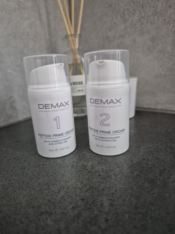 Demax (Япония) по 20 мл *без 1 затемнения, купался набор ●Глубокое увлажнение и ревитализация ●Заметное уменьшение морщин ●Улучшение текстуры и цвета кожи 1. Кислотный гель (pH 2.2) Запускает процесс карбокситерапии, обеспечивая глубокую очистку, интенсивное увлажнение и стимулируя клеточное обновление. Эффективно уменьшает морщины, осветляет пигментацию и улучшает микроциркуляцию, даря коже здоровое сияние. 🏷Активные ингредиенты: Пировиноградная кислота (10%): глубокое очищение, стимуляция клеточного обновления. Фитиновая кислота (7%) и ферруловая кислота (6%): освещение и антиоксидантная защита. Экстракт орхидеи и розы: увлажнение, успокоение. 2. Гель-активатор (pH 8.5) Активирует реакцию высвобождения углекислого газа, насыщая кожу кислородом. Улучшает тонус, эластичность и восприятие кожей активных компонентов. Усиливает микроциркуляцию и восстановление, обеспечивает увлажнение и подготавливает кожу к дальнейшим этапам ухода. 🏷Активные ингредиенты: Экстракт орхидеи (10%) и лаванды: антиоксидантный эффект, увлажнение. Сок алоэ: успокоение, регенерация. 🌟ИНСТРУКЦИЯ:🌟 1) Очистка кожи: Тщательно очистите лицо, шею и зону декольте, удаляя макияж и загрязнения. 2) Нанесение кислотного геля: равномерно нанесите кислотный гель на подготовленные участки. Оставьте на 3-5 минут, позволяя активным компонентам проникнуть в кожу. 3) Приспособление геля-активатора: Поверх кислотного геля нанесите гель-активатор, обеспечивая равномерное покрытие. Оставьте на 5-10 минут. 4)Снятие остатков: По истечении времени экспозиции осторожно удалите остатки гелей с помощью влажных спонжей или салфеток.